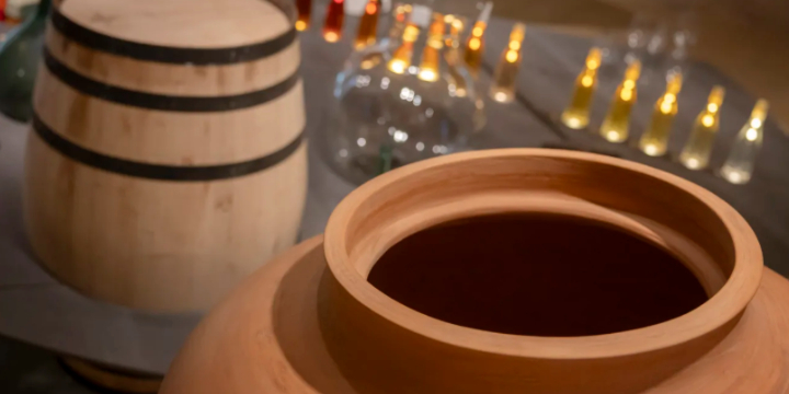 Tast de vins per conèixer com diferents materials faciliten la vida del vi, mentre fermenta o també quan viatja (fusta, fang, vidre o llauna).