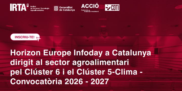 Vine a aquesta sessió presencial al Parc Agrobiotech de Lleida per conèixer de primera mà les oportunitats de finançament del sector agroalimentari dins les convocatòries 2026-2027 d’Horizon Europe del Clúster 6 (alimentació, bioeconomia, recursos naturals, agricultura i medi ambient), Clúster 5 (Clima), Circular Bio-based (CBE) i les missions relacionades (Sols, Adaptació al canvi climàtic i Oceans). Podràs informar-te de les convocatòries, resoldre els teus dubtes i conèixer què estan fent els clústers catalans i les seves empreses en projectes europeus d’RDI.